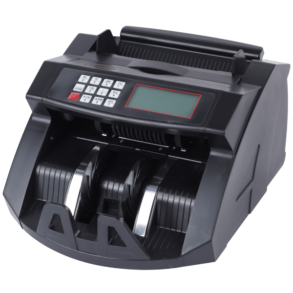 SENSORS – UV, MG, IR , MT Hopper Capacity:200 Stacker Capacity: 200 Counting Speed: 1000pcs/min Dimension: 289 x 255 x 180 mm Power Consumption: ≤80W Counting Display: 4 digits LED LCD Colour Display: Turns red with Fake Note Net Weight: 5.5 kg